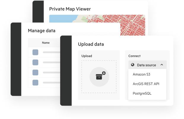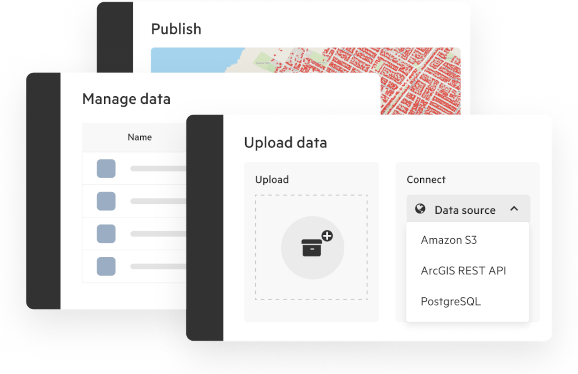 - Import data and manage updates from your existing sources, including Esri REST APIs, AWS S3, or drag-and-drop uploads.